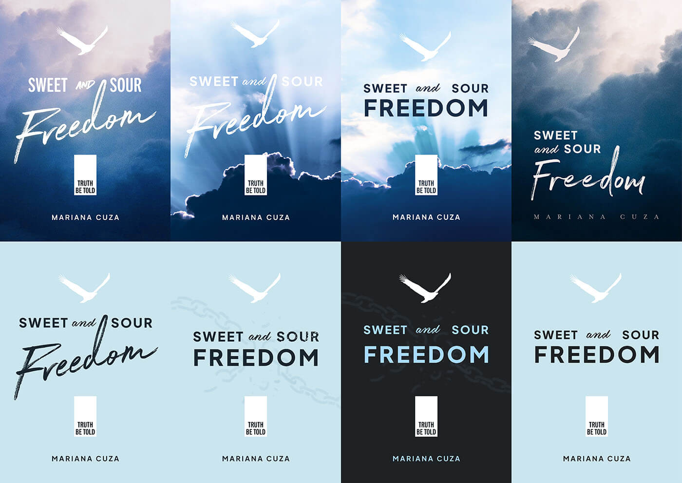 The final design incorporated a lot of client feedback to emphasise the impact of Mariana's story. I used a lot of light blue to frame the overall tone of the book, and contrasted this with a humanist sans serif and hand drawn typeface to emphasise Mariana's personal journey to freedom. I used subtle bird shapes to indicate Mariana's journey throughout the book.