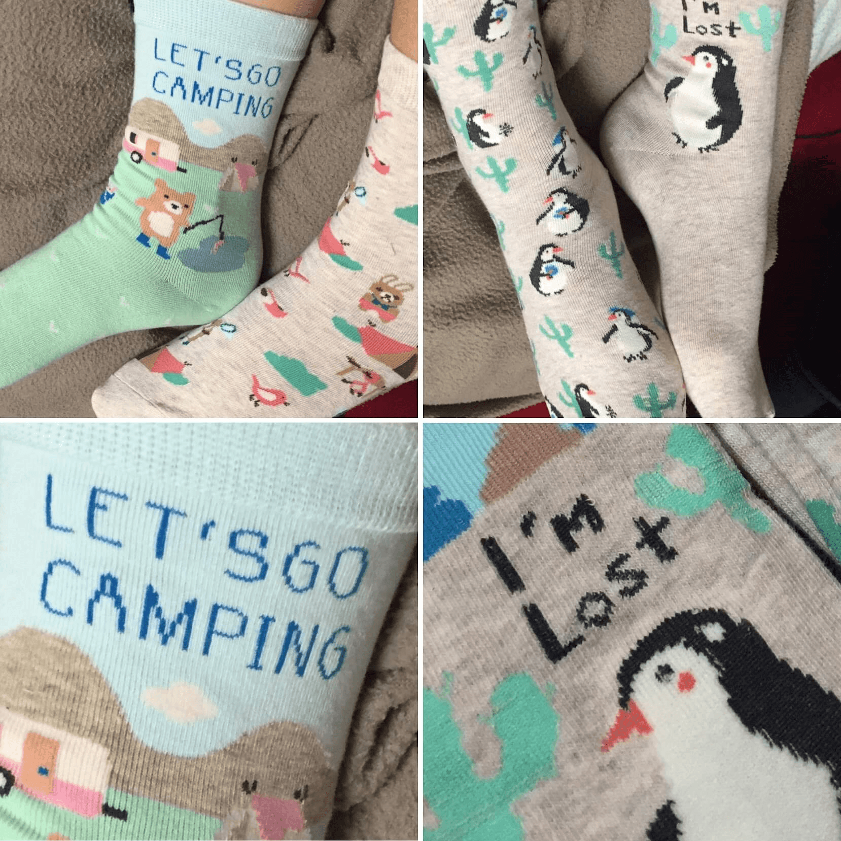 I saw these socks online and was immediately drawn to them. They were quite expensive but my ex-boyfriend saw I really liked them, so he bought them for me along with the camping socks. They came as a set of two pairs, and I joked when he gave them to me that I would wear out one pair and frame the other.